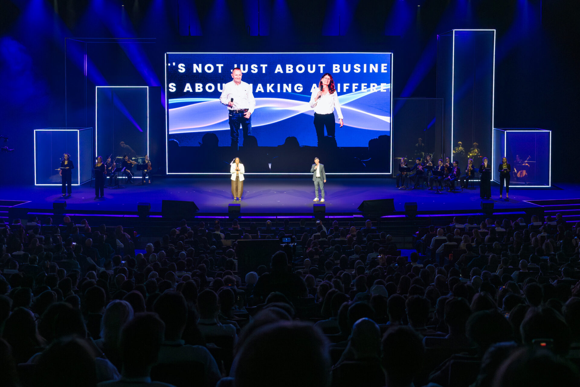 La journée a débuté par des séances de rencontre, des ateliers et du networking, occupant près de 20 000 m² du Palais des Congrès. Une session plénière a ensuite captivé l’audience avec la présence de vingt musiciens dirigés par Uèle Lamore et des intervenants de marque, incluant Sir Alex Younger, ancien chef du MI6. Ce moment fort a offert émotion et inspiration, renforçant le sentiment de connexion autour de la nouvelle vision de l’entreprise.