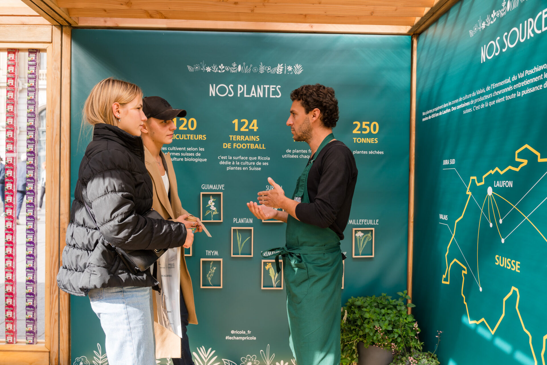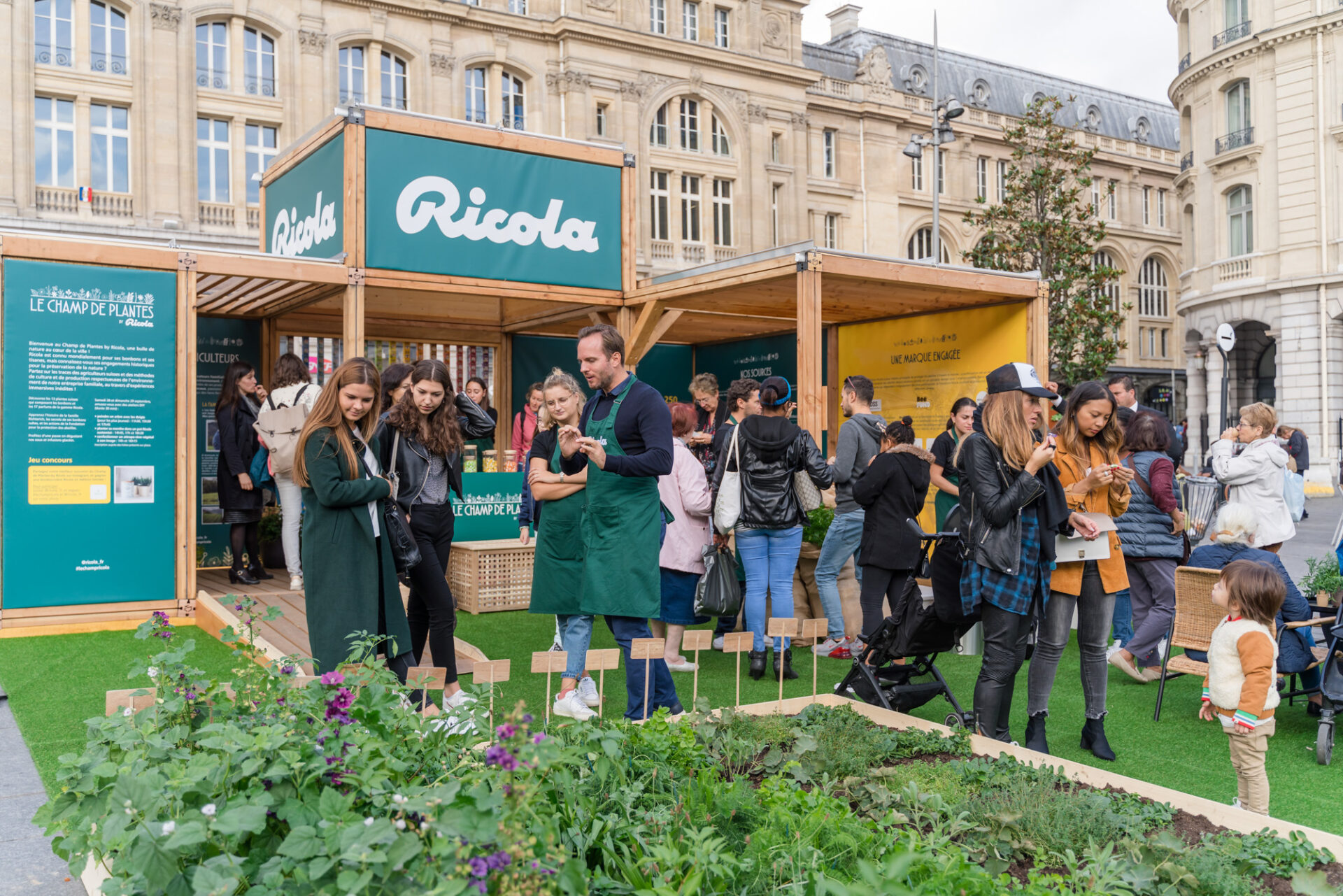 Le Champ de Plantes s’est niché sur le parvis de la gare Saint-Lazare pour mettre en scène des champs des 13 plantes et sensibiliser le public à la préservation des abeilles dont Ricola est un des principaux partenaires.